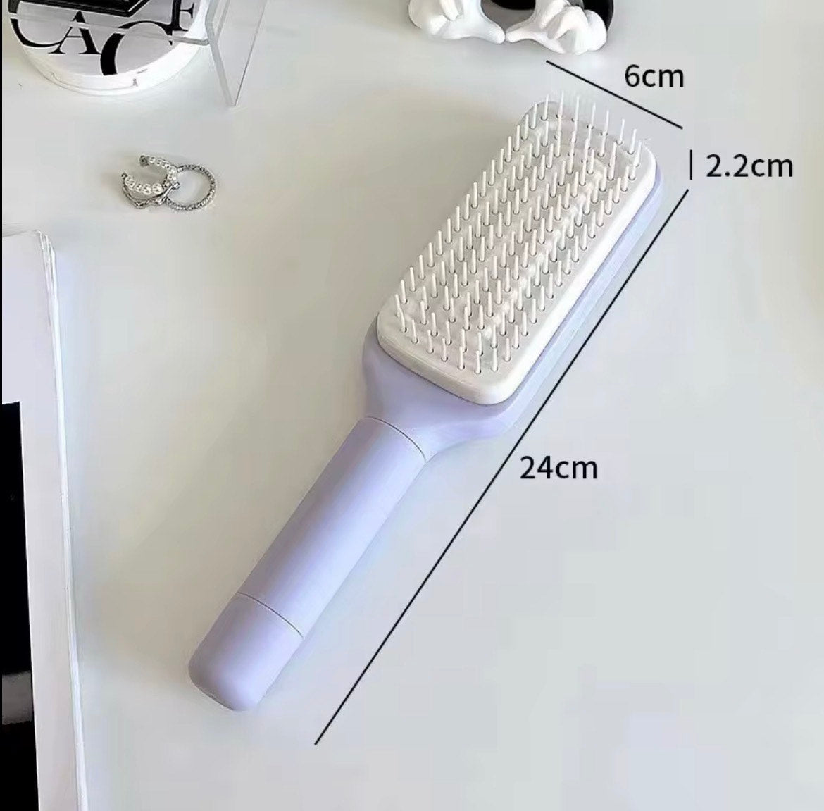 Despídete del pelo acumulado en el cepillo con este innovador peine autolimpiante, diseñado para eliminar los cabellos atrapados con solo pulsar un botón. Ideal para uso diario en casa, peluquerías o para llevar en el bolso.